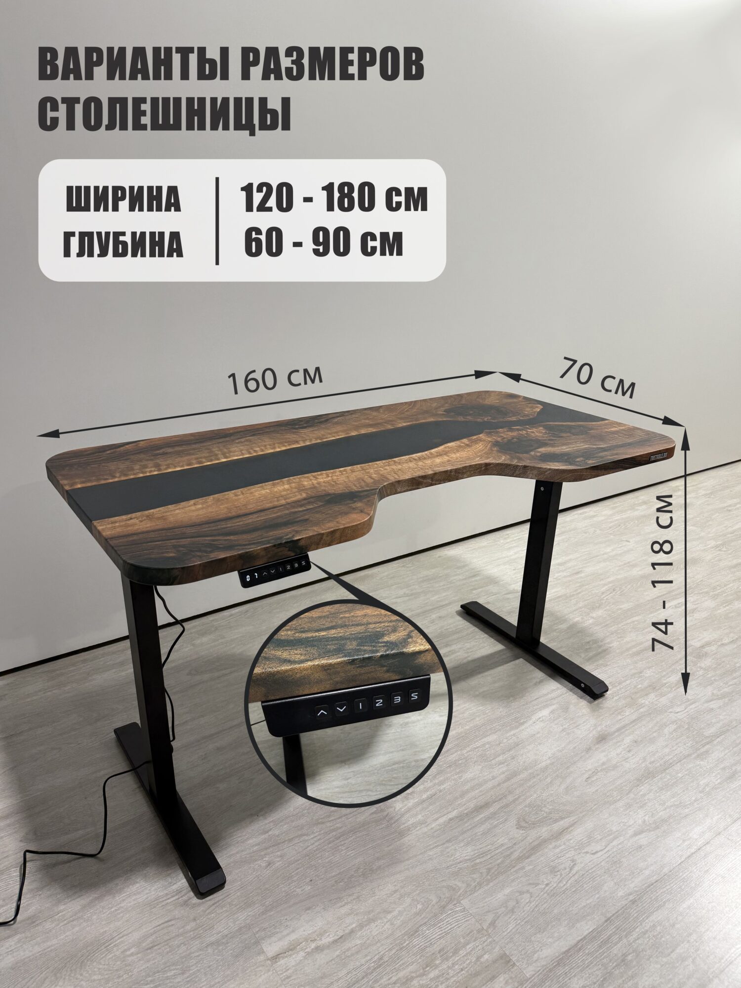 Стол компьютерный с подъемным механизмом и вырезом дизайнерский лофт THETABLE RU 160х70 3.26/14.1