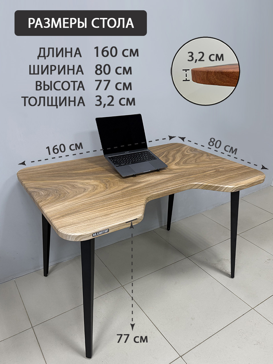 - Толщина столешницы, мм: 32