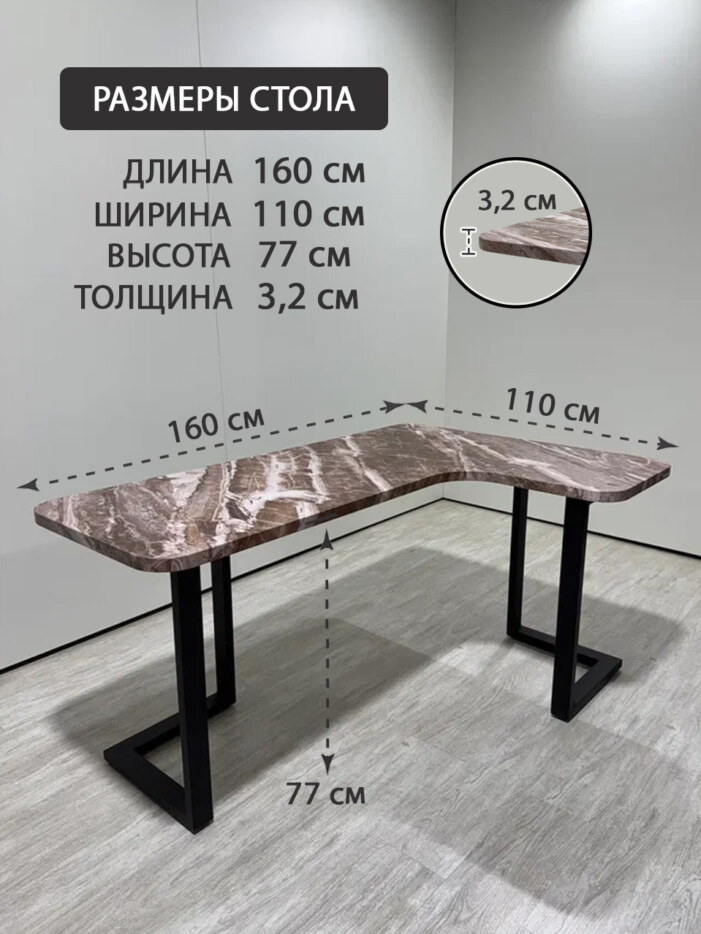 Стол компьютерный угловой дизайнерский лофт THETABLE RU 160х110 2.63/3.1