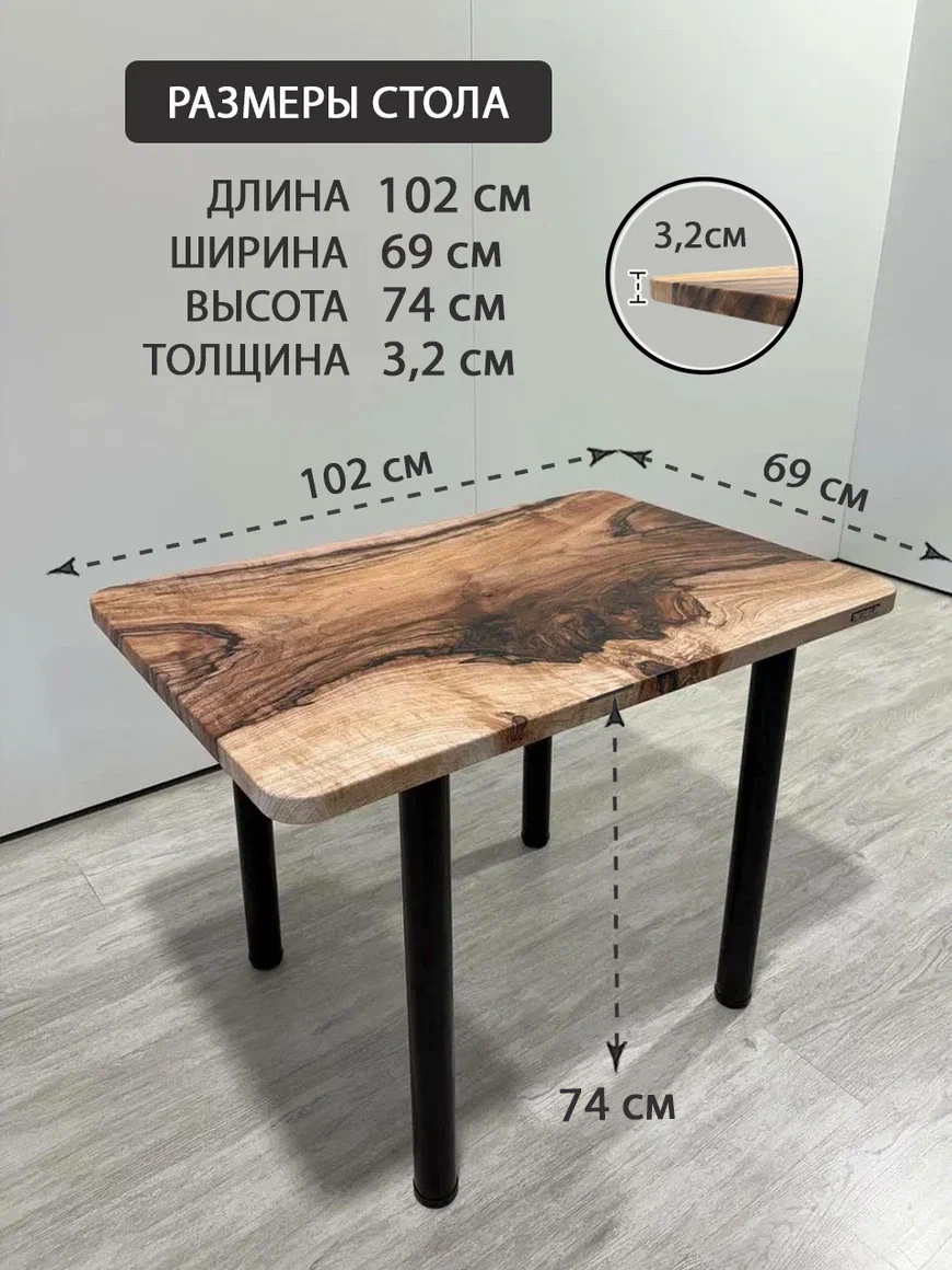 Стол кухонный обеденный прямоугольный дизайнерский лофт THETABLE RU 102х69 12.5/11.1