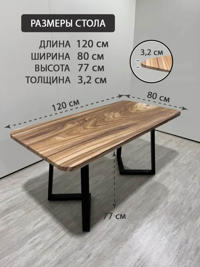 Стол кухонный обеденный прямоугольный дизайнерский лофт THETABLE RU 120х80 9.9/1.1
