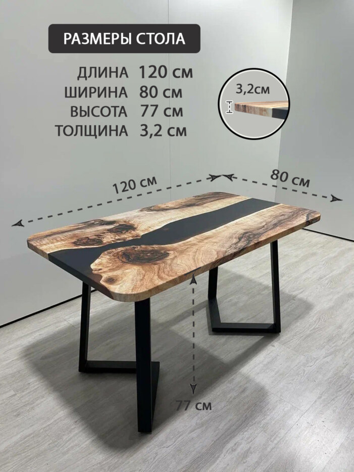 Стол кухонный обеденный прямоугольный дизайнерский лофт THETABLE RU 120х80 3.25/1.1