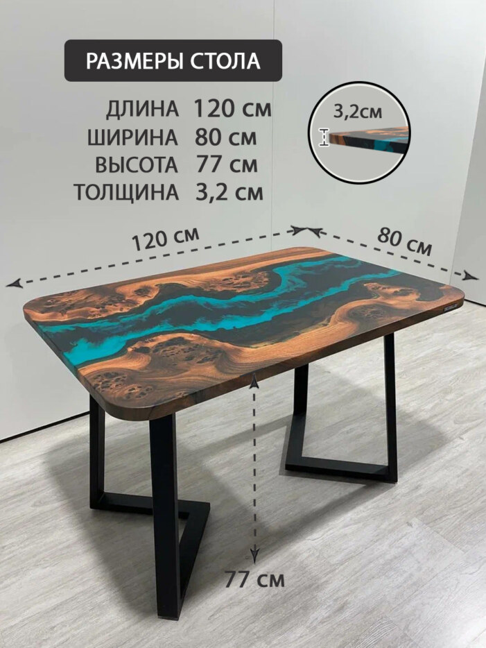 Стол кухонный обеденный прямоугольный дизайнерский лофт THETABLE RU 120х80 4.5/1.1