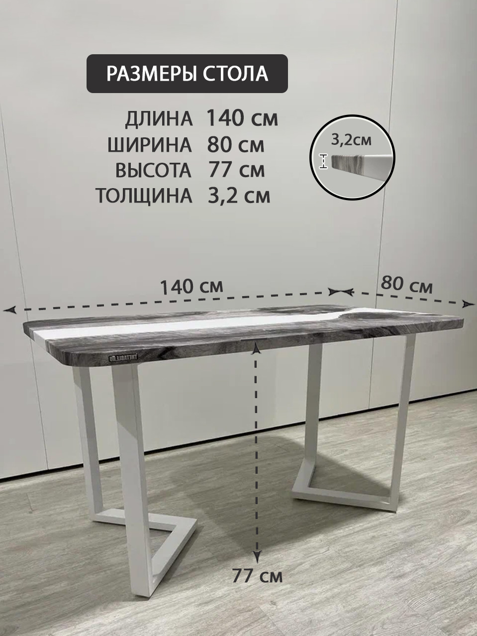 - Толщина столешницы, мм: 32