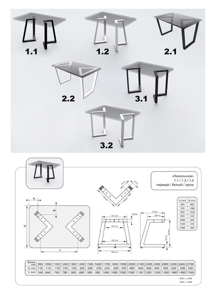 Ножки столов изготовлены из качественного стального профиля размером 60х30 мм, толщина металла 1,5 мм, заводская порошковая покраска, регуляторы высоты. Два цвета - белый и черный.