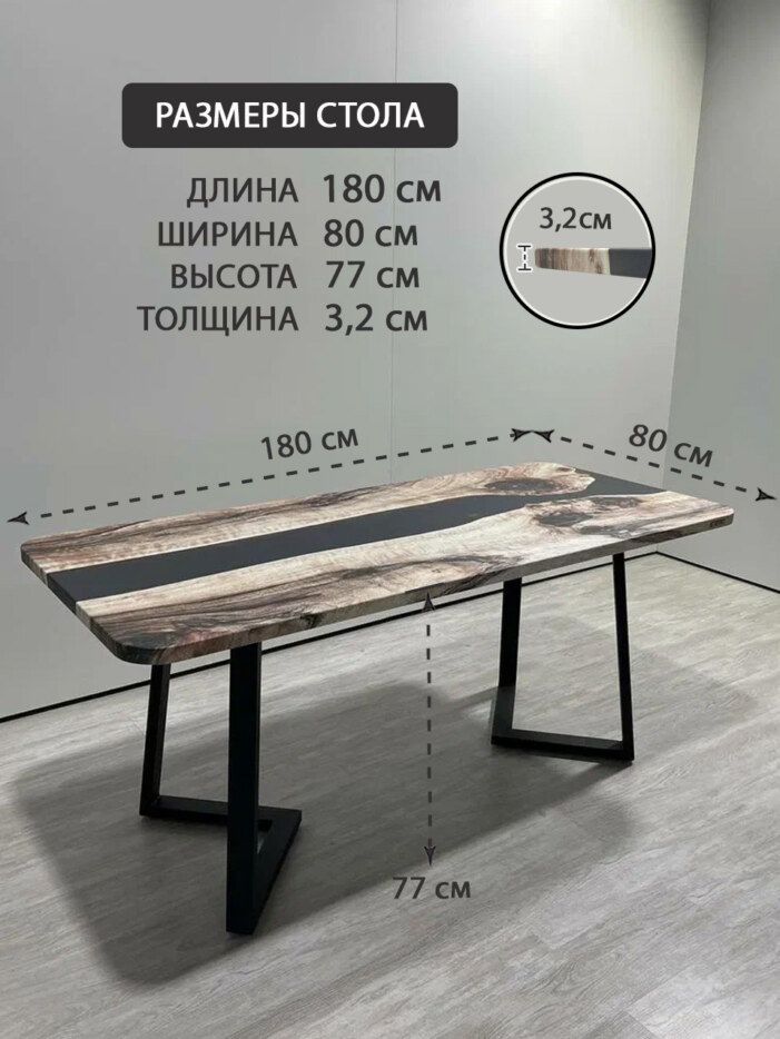 Стол кухонный обеденный прямоугольный дизайнерский лофт THETABLE RU 180х80 3.19/1.1
