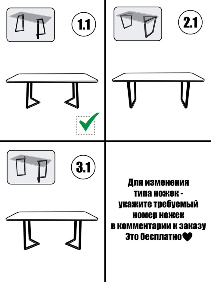 - Комплектация: деревянный ящик. Ножки упакованы в пупырчатую плёнку и картонную коробку. В комплекте (в упаковке с ножками) винты для крепления ножек к столешнице - 14 шт. (винт 6*40 мм) и ключ шестигранный - 1 шт.