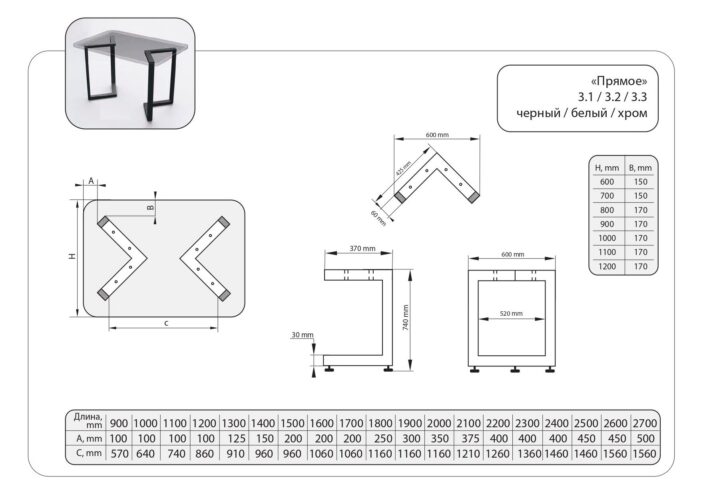 Ножки столов изготовлены из качественного стального профиля размером 60х30 мм, толщина металла 1,5 мм, заводская порошковая покраска, регуляторы высоты. Два цвета - белый и черный.