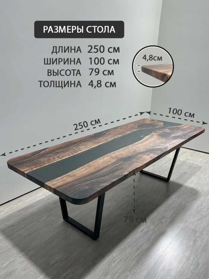 Стол кухонный обеденный прямоугольный дизайнерский лофт THETABLE RU 250х100 3.47/2.1