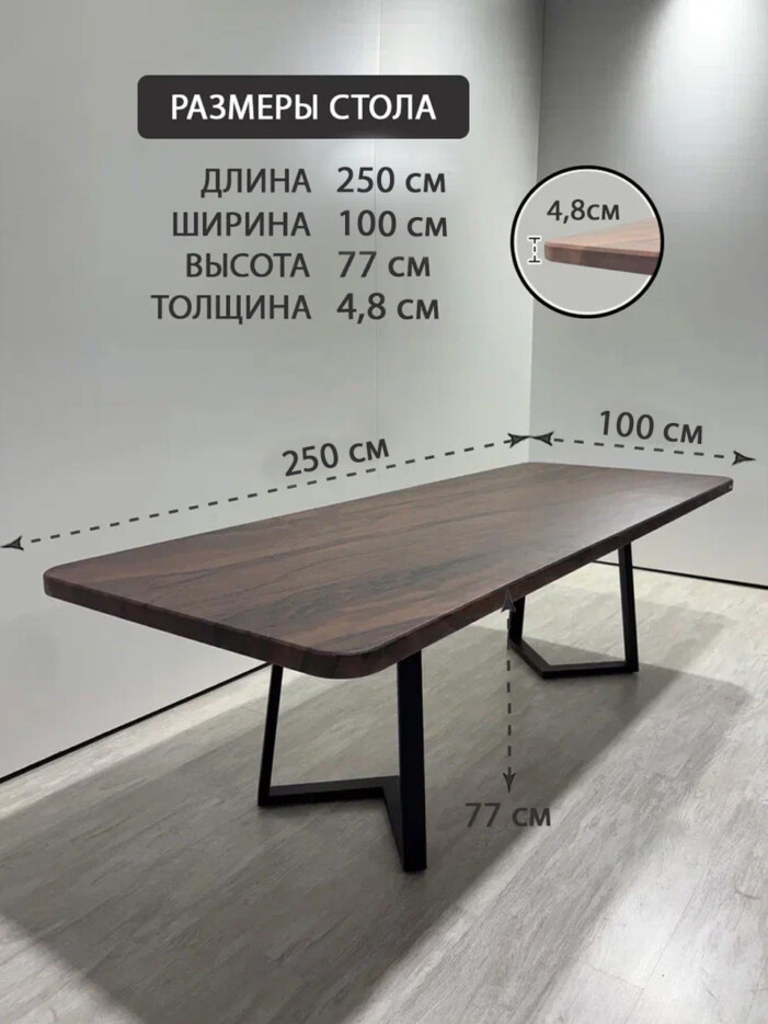 Стол кухонный обеденный прямоугольный дизайнерский лофт THETABLE RU 250х100 6.4/1.1