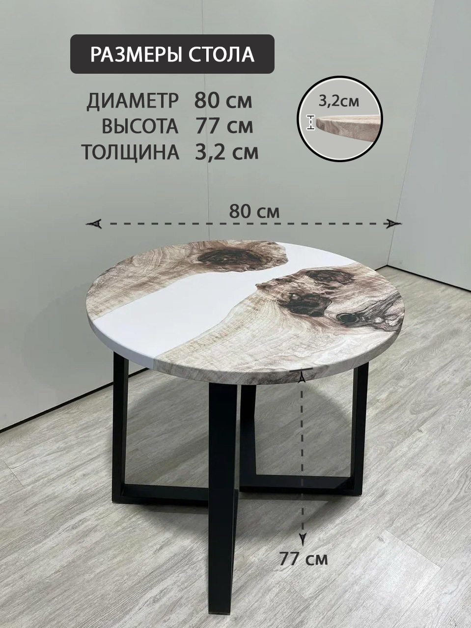 Стол кухонный обеденный круглый дизайнерский лофт THETABLE RU 80х32 3.34/1.1