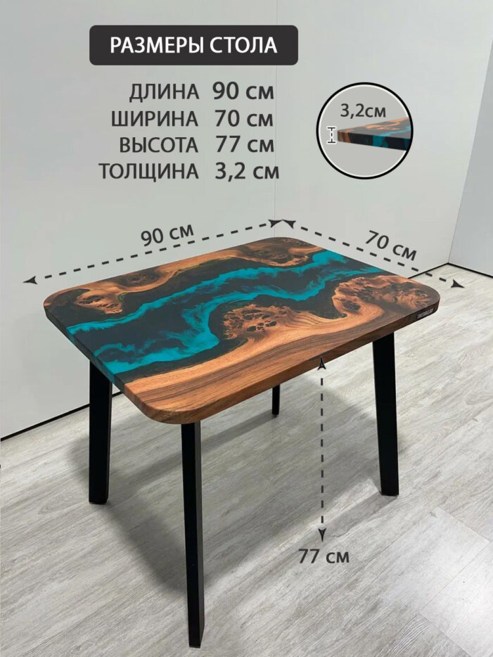 Стол кухонный обеденный прямоугольный дизайнерский лофт THETABLE RU 90х70 4.5/4.1