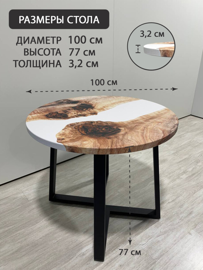 Стол кухонный обеденный круглый дизайнерский лофт THETABLE RU 100х32 3.18/1.1