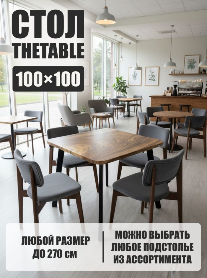 Стол кухонный обеденный квадратный дизайнерский лофт THETABLE 100х100 9.2/4.1