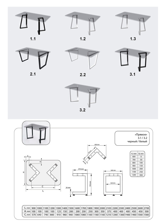 - Форма столешницы: Прямоугольник