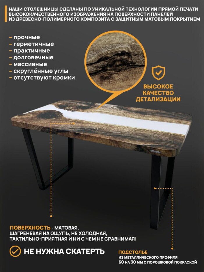 Кухонный\обеденный стол THETABLE — идеальный выбор для большой семьи и стильной кухни Устали от царапин, пятен и скатертей? Этот кухонный стол создан для того, чтобы...