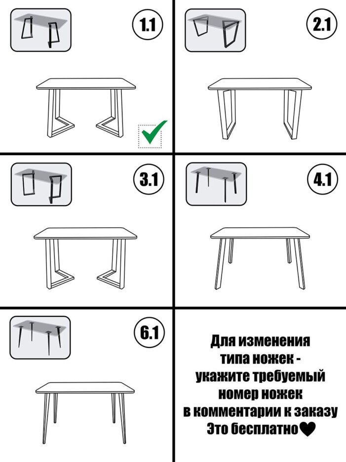 - Комплектация: деревянный ящик. Ножки упакованы в пупырчатую плёнку и картонную коробку. В комплекте (в упаковке с ножками) винты для крепления ножек к столешнице - 8 шт. (винт 6*40 мм) и ключ шестигранный - 1 шт.