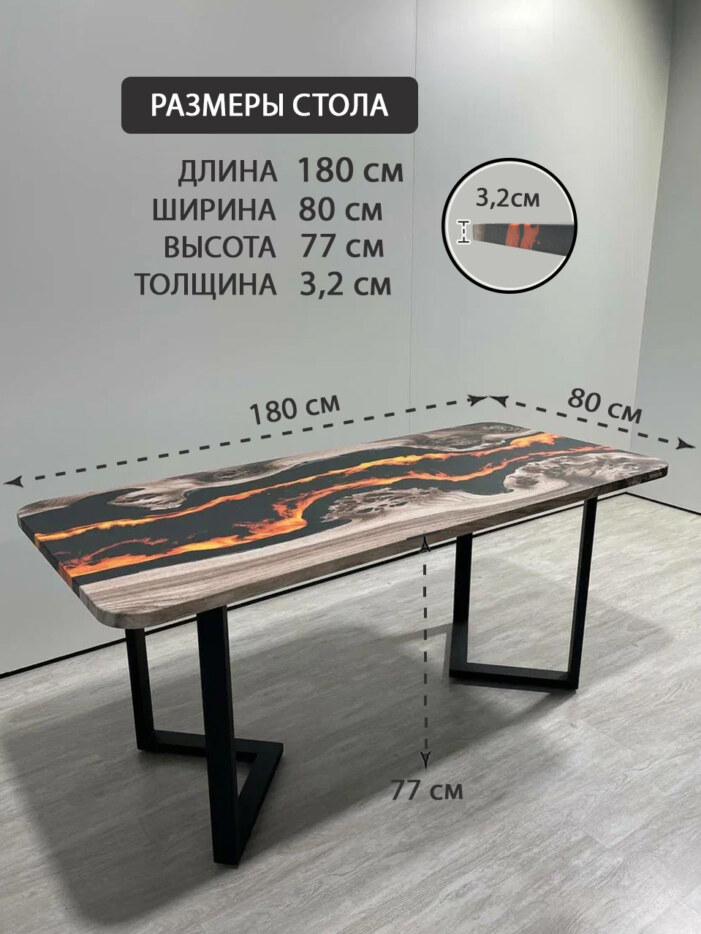 Стол кухонный обеденный прямоугольный дизайнерский лофт THETABLE RU 180х80 4.15/3.1