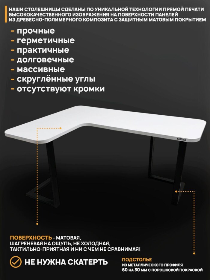 - Конструкция стола: Угловой