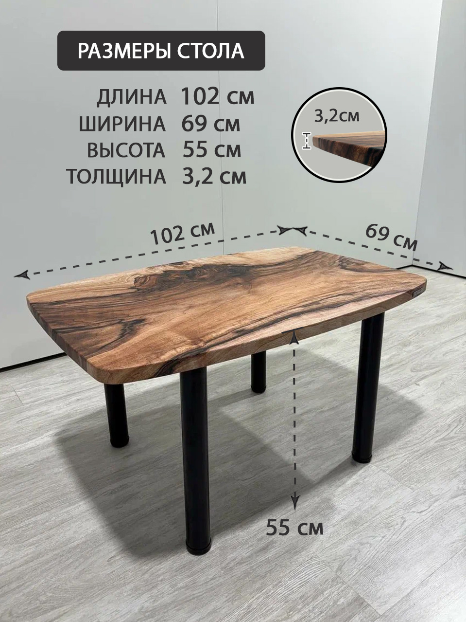 - Толщина столешницы, мм: 32