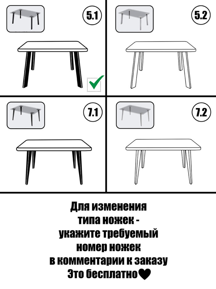 Ножки столов изготовлены из качественного стального профиля размером 60х30 мм, толщина металла 1,5 мм, заводская порошковая покраска, регуляторы высоты. Два цвета - белый и черный.